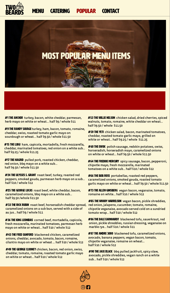 This concept design is for a local Grand Rapids restaurant, Two Beards Deli. I wanted to capture the creative environment of the restaurant with making an easy to navigate website concept that would help customers pick from their over 100 sandwich menu.